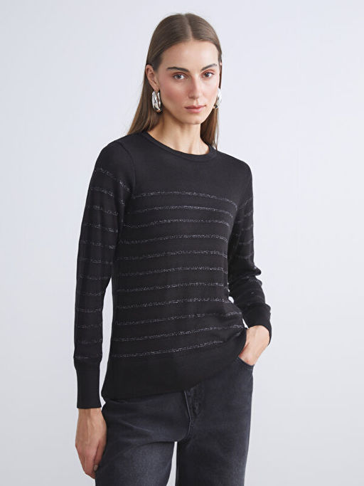 • Bisiklet Yaka ?izgili Kad?n Triko Kazak