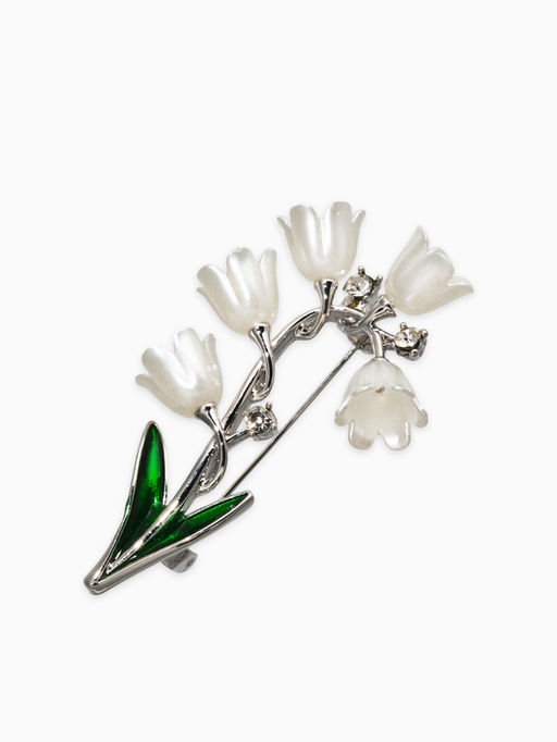 • Брошь "Цветы Ландышей", цвет бело-зелёный в серебре