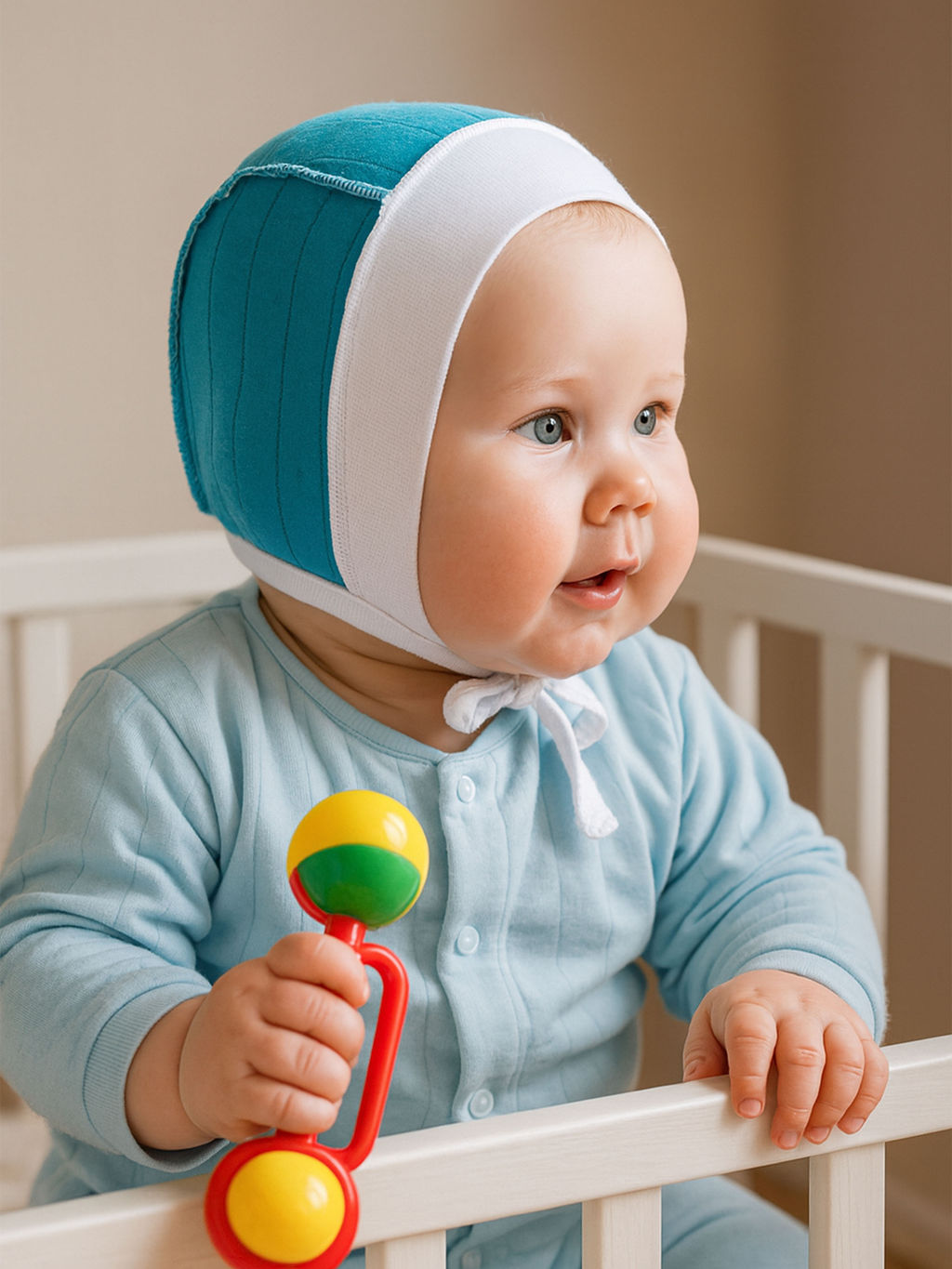 Ясельный чепчик для новорожденных из хлопкового трикотажа. Сшит швами наружу для защиты нежной кожи младенцев. Спереди, в области лба мягкая манжета. Удобные тесёмки завязочки помогут закрыть ушки. Выпускается в однотонном цвете.