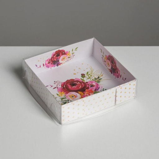 Цена за 5 шт. Кондитерская упаковка, коробка для макарун с пластиковой крышкой, «Цветы», 12 х 12 х 3.5 см