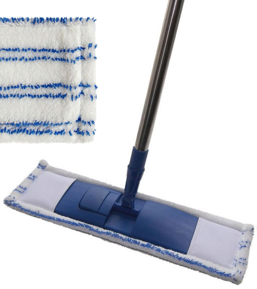 • Швабра плоская (насад. бело-син.,микроф.,прямоуг.рук.нерж.125 см) арт. Р043В