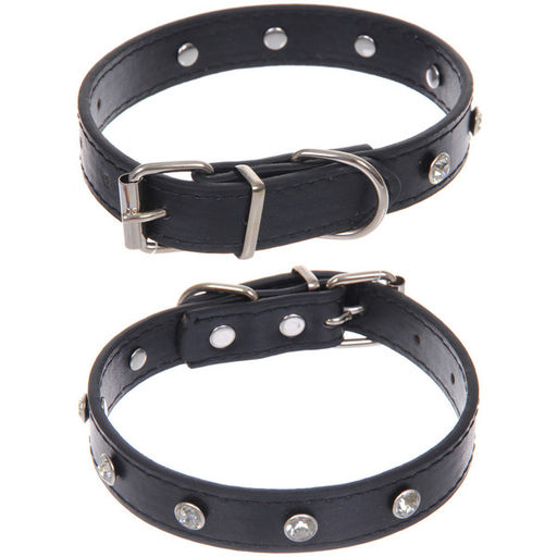 Цена за 3 шт. Ошейник для собак и кошек со стразами "На стиле", цвет черный, 2см, размер S, 28*30см (лейбл)