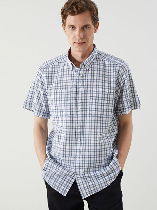 Regular Fit K?sa Kollu Ekose Erkek G?mlek