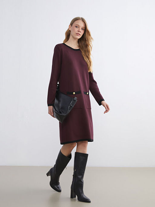 Bisiklet Yaka Triko Elbise