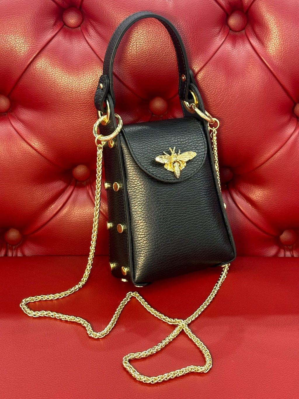 Можно носить в руке, либо на изящной цепочке через плечо - очень удобно!