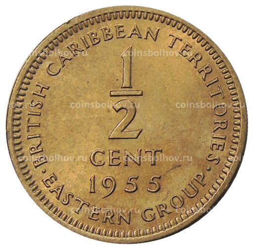 • Монета 1/2 цента 1955 года Британские Восточные Карибы