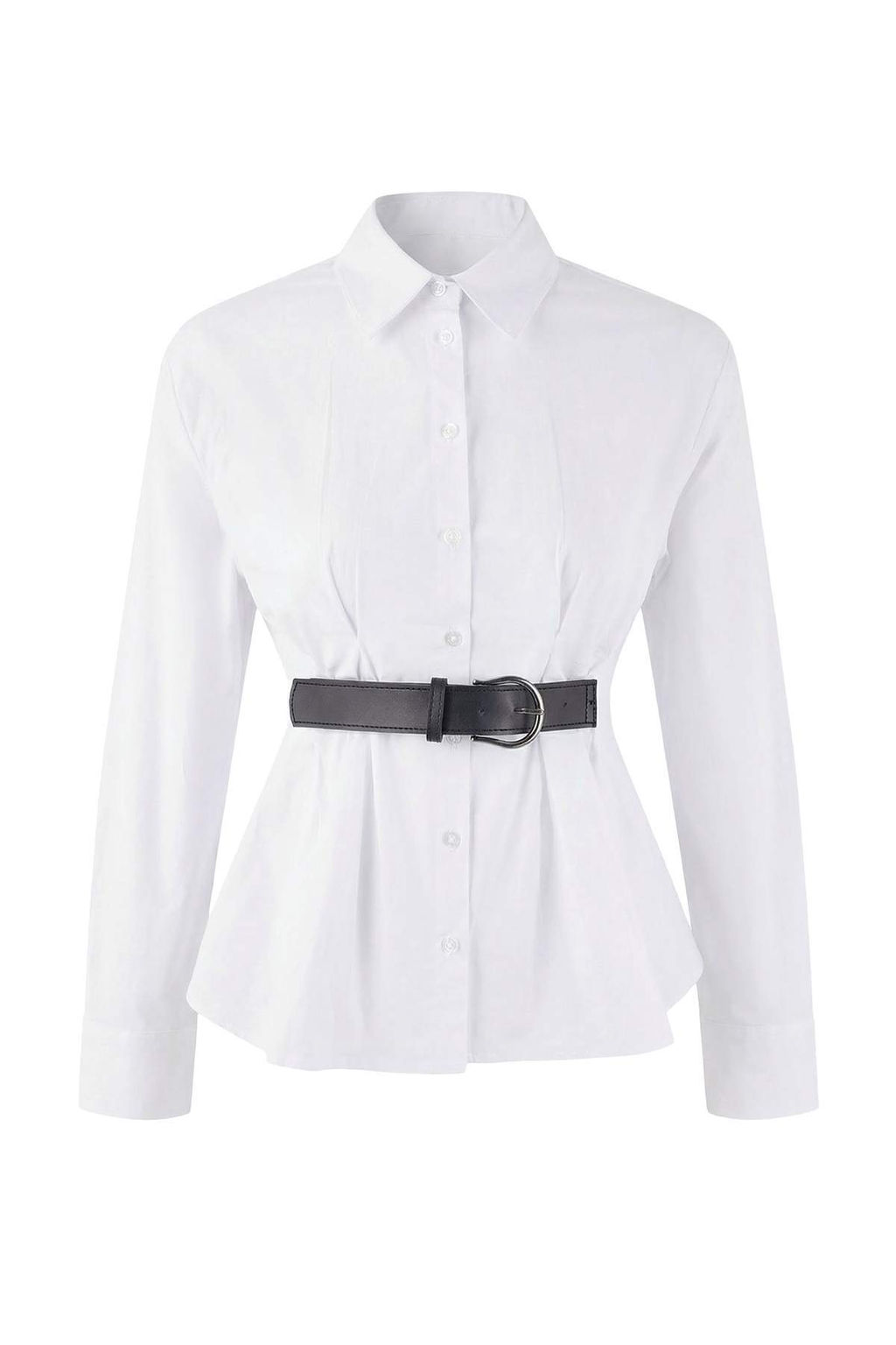 Beyaz Suni Deri Kemer Detayl? Pileli Gomlek TWOSS26GO00011
