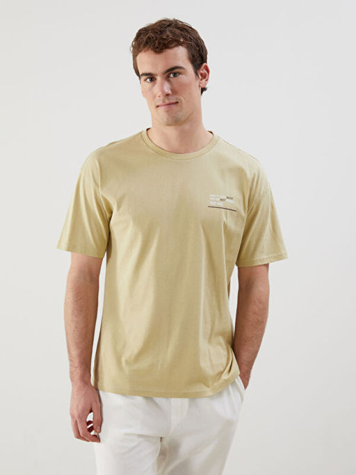 • Bisiklet Yaka Bask?l? Penye Erkek Ti??rt