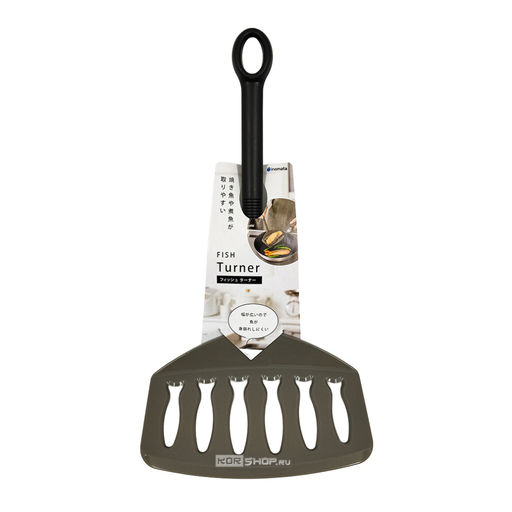 Лопатка для жарки 14.7?7.6?27.6 см Fish Turner Marumo Takagi - удобный инструмент для аккуратного переворачивания на сковороде, в воке или на гриле рыбы, стейков, котлет и других продуктов с деликатной и нежной структурой. Широкая рабочая часть надежно поддерживает филе целиком, помогает подхватывать его пластом и снижает риск разламывания готовящихся продуктов. Продольные прорези в форме рыбок позволяют стекать лишнему жиру и соусу, сохраняя хрустящую корочку и опрятный вид блюда. Термостойкий нейлон не царапает антипригарные покрытия и подходит для ежедневного использования с любыми видами сковородок и воков. Удлиненная ручка с крупным отверстием удобно лежит в руке и не выскальзывает во время готовки, а также позволяет хранить лопатку в подвешенном виде, экономя место на кухне.