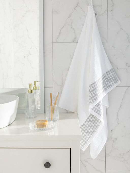 Мягкое махровое банное полотенце DeНАСТИЯ коллекции Пье-де-пуль изготовлены из высококачественного 100% хлопка, который комфортен, приятен на ощупь и прекрасно впитывает влагу. Хлопок натуральный, не обработан химическими компонентами, после стирки возможна усадка, махровая ткань из серии Пье-де-пуль с высокими петлями пышная, мягкая и нежная на ощупь. Полотенца из коллекции Пье-де-пуль отличаются повышенной плотностью - 470 г/м2, махровые полотенца представлены в трех размерах: 70х130 см, 50х90 см, 35х70 см. Бордюр полотенца представлен в жаккардовом исполнении узором Пье-де-пуль, в бытовом названии - гусиная лапка. На сегодняшний день Пье-де-пуль является настоящим символом шика, стиля и благородства. Каков бы ни был интерьер вашей ванной комнаты - наши полотенца идеально впишутся в его пространство. Размер 70х130 см, цвет белый.