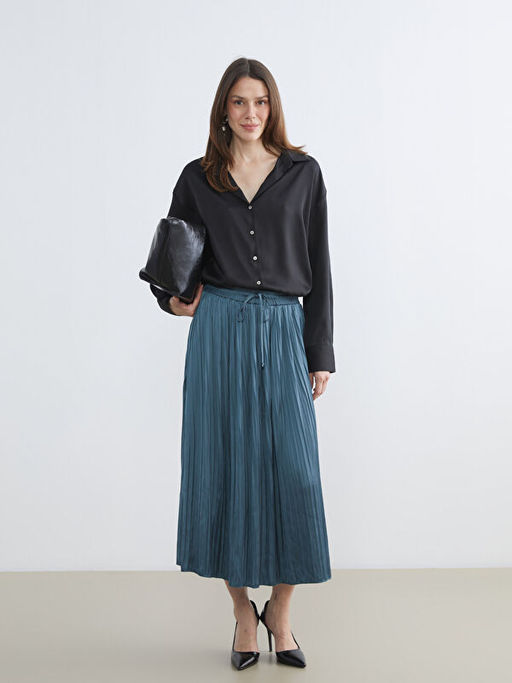 • Beli Lastikli Saten Pileli Etek