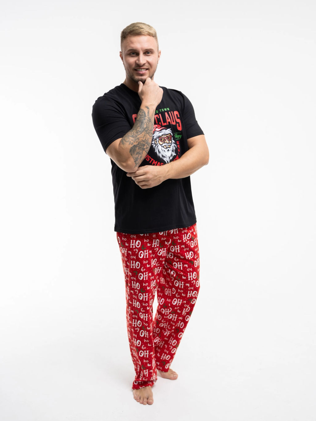 Мужской новогодний костюм из 100% хлопка, состоит из футболки с крутой печатью и ярких стильных брюк. Костюм идеально подойдет для празднования нового года, либо для новогодней фотосесии. Отличный вариант для новогоднего подарка.­