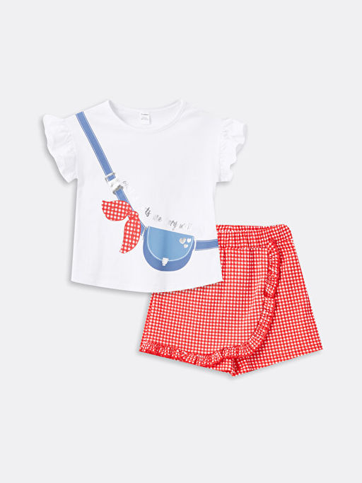 Bisiklet Yaka Bask?l? K?z Bebek Bluz ve ?ort Etek 2li Tak?m