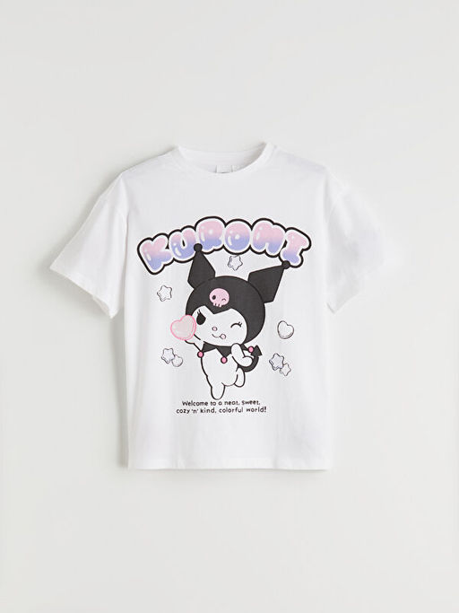 Bisiklet Yaka Kuromi Bask?l? K?z ?ocuk Ti??rt