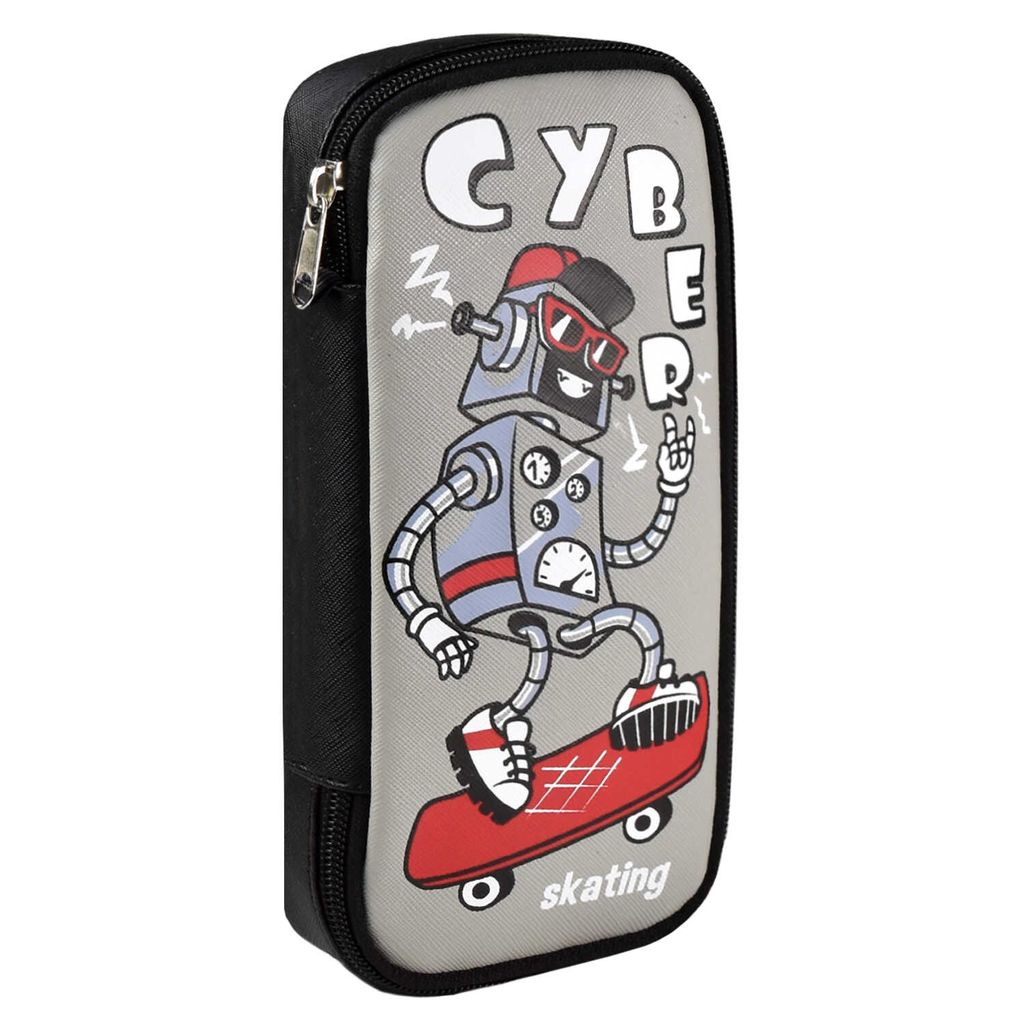 • Пенал школьный, арт.59468/ 25 РОБОТ НА СКЕЙТЕ 21х9х4 см, полиуретан, молния, шелкография, ПЭТ-пакет