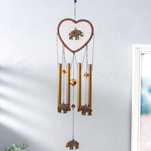 Музыка ветра с ловцом снов Слон в сердце, 4 трубки, 52 см