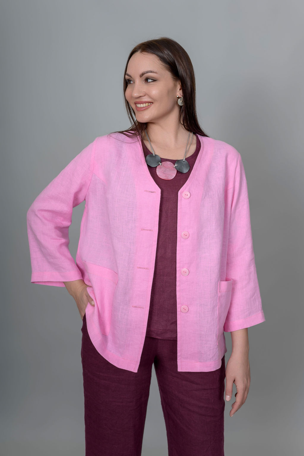 Жакет свободного кроя из 100%-го льна незаменимая вещь гардероба, особенно на летний период. Сдержанный дизайн делает его уместным как в деловой обстановке, так и на неформальных встречах.