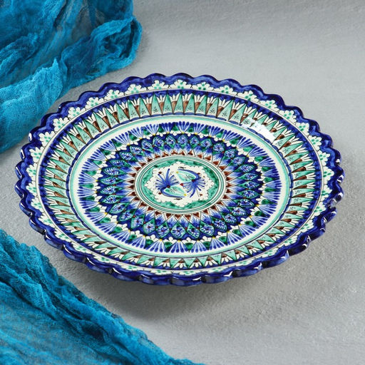 • Тарелка узбекская Риштанская Керамика «Орнамент», d=25 см, синяя