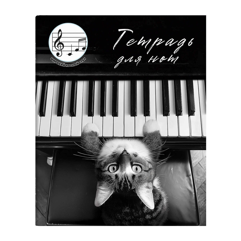 Тетрадь для нот для младших классов 24 л. арт. 73211 КОТ-ПИАНИСТ /А5+, белый офсет, мягкий переплёт (2 скобы), облож.- мелованный картон 190 г/м?, глянцевая ламинация, глянцевая ламинация. расширенный нотный стан. нет/
