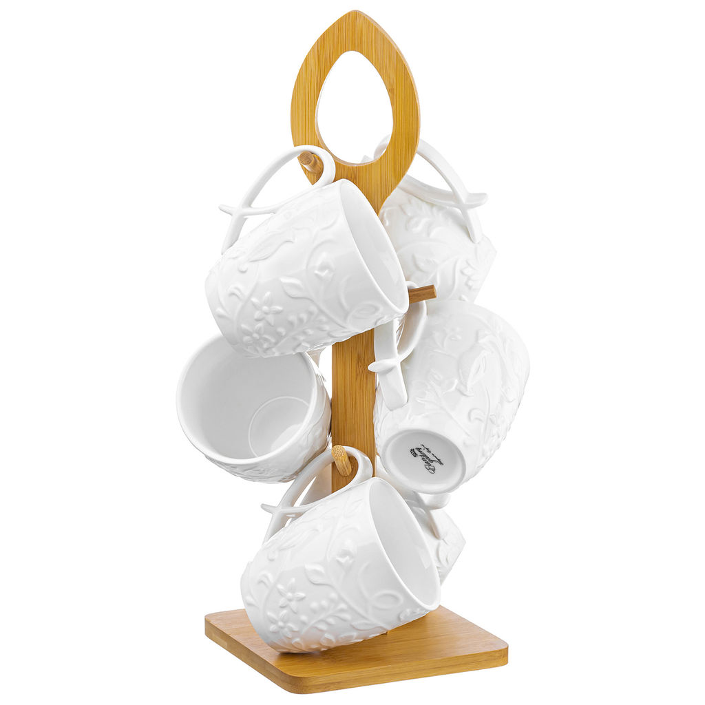 Набор кружек 6 пр. 300 мл 16*18*38 см "Птички на ветке" на деревянной подставке с ручкой