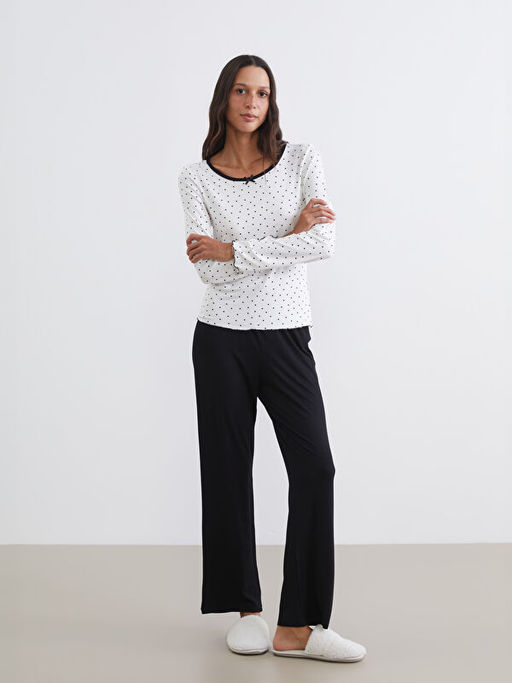 Bisiklet Yaka Puantiyeli Kad?n Pijama Tak?m