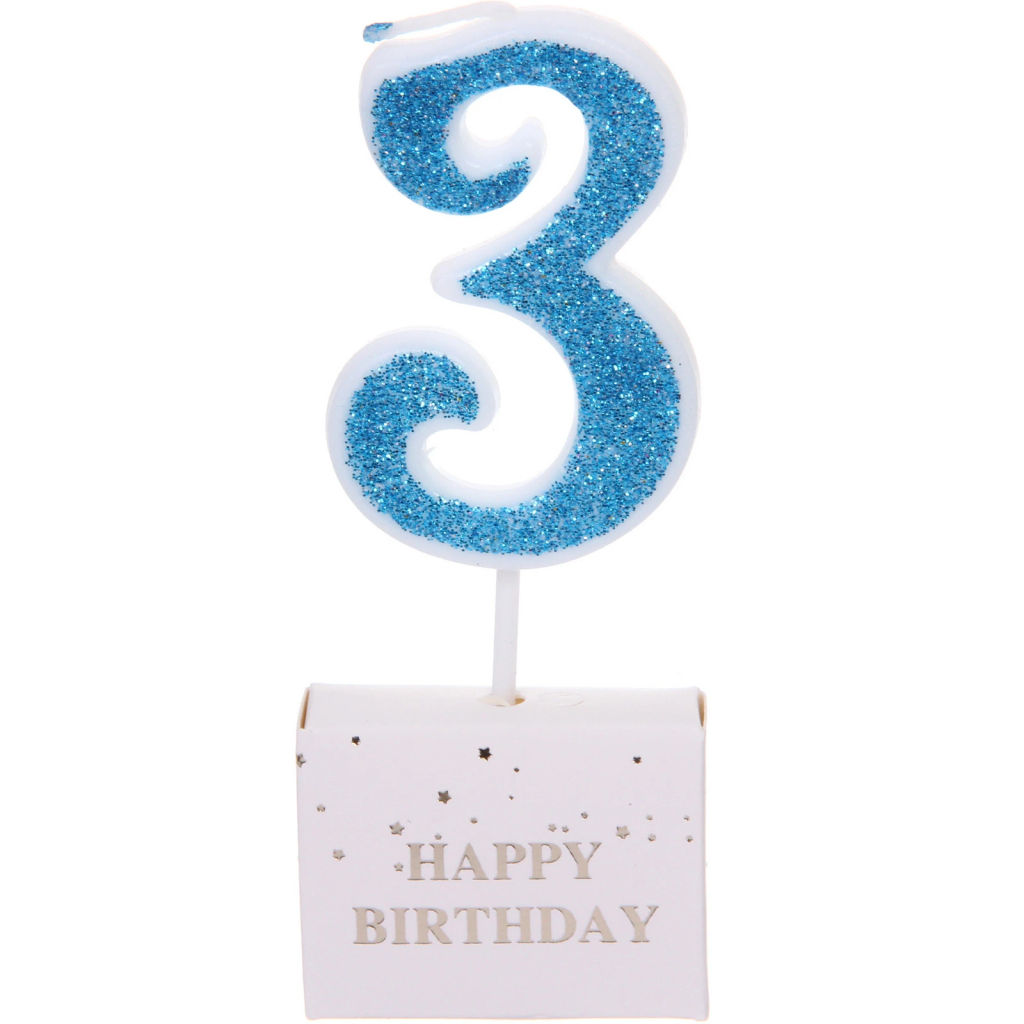 Цена за 10 шт. Свеча для торта Цифра Иллюзия "3" 9.5 см, голубой