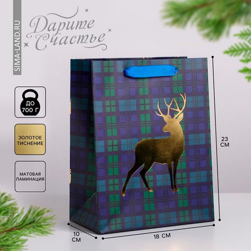 Плотность, г/м²: 190. Допустимый вес вложения, г: 700. Тематика: Новогодняя. Символ года: Нет. Тематика праздника: Новый год. Отделка пакета: Без отделки. Вид ручки: Ручка-лента. Бесплатная доставка: Да. Наша разработка: Да. Размеры товара: 23/10/18.