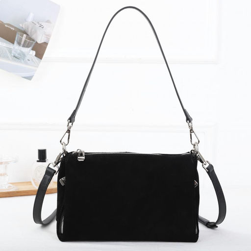 Стильная сумка на плечо MIRONPAN  выполнена из натуральной замши. Сумка закрывается на молнию с металлическим  поводком, внутри 3 отдела одно закрывается на молнию внутри два кармана: открытый  на молнии. На лицевой стороне изделия 2 боковых кармана быстрого доступа.  В комплекте два съёмных кожаных  ремня шириной 2 см , позволяют комфортно носить аксессуар на плече и в руке.