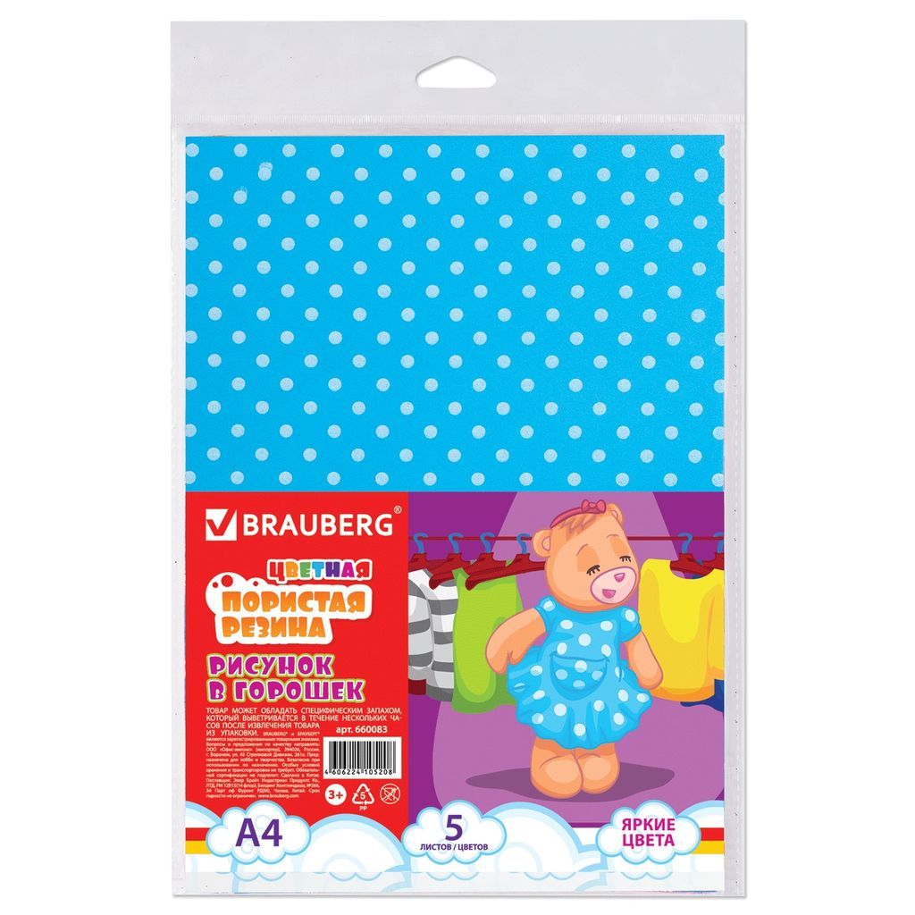 • Фоамиран с рисунком Brauberg/Остров Сокровищ А4 5л. 5цв., толщина 2мм (660083) "горошек"