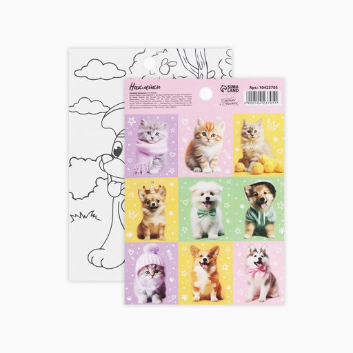 Цена за 10 шт. Наклейки детские бумажные «Котики и пёсики», c раскраской, 11×15.5 см