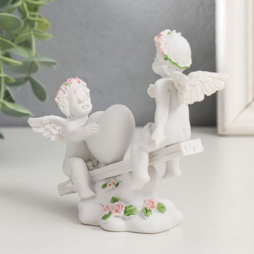 Фигурка полистоун Ангелочки в розовых веночках качаются на качалке, 10?11?4.5 см
