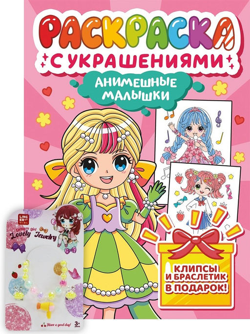 • Раскраска с украшениями Проф-Пресс "Анимешные малышки" (34838-1) 250*315мм, 16стр.