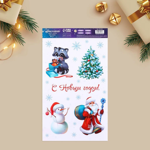 • Цена за 2 шт. Наклейки на окна многоразовые «Новогодняя компания», 20×34.5 см