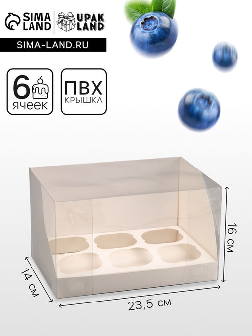 Цена за 2 шт. Коробка для 6 капкейков, белая 23.5×16×14 см