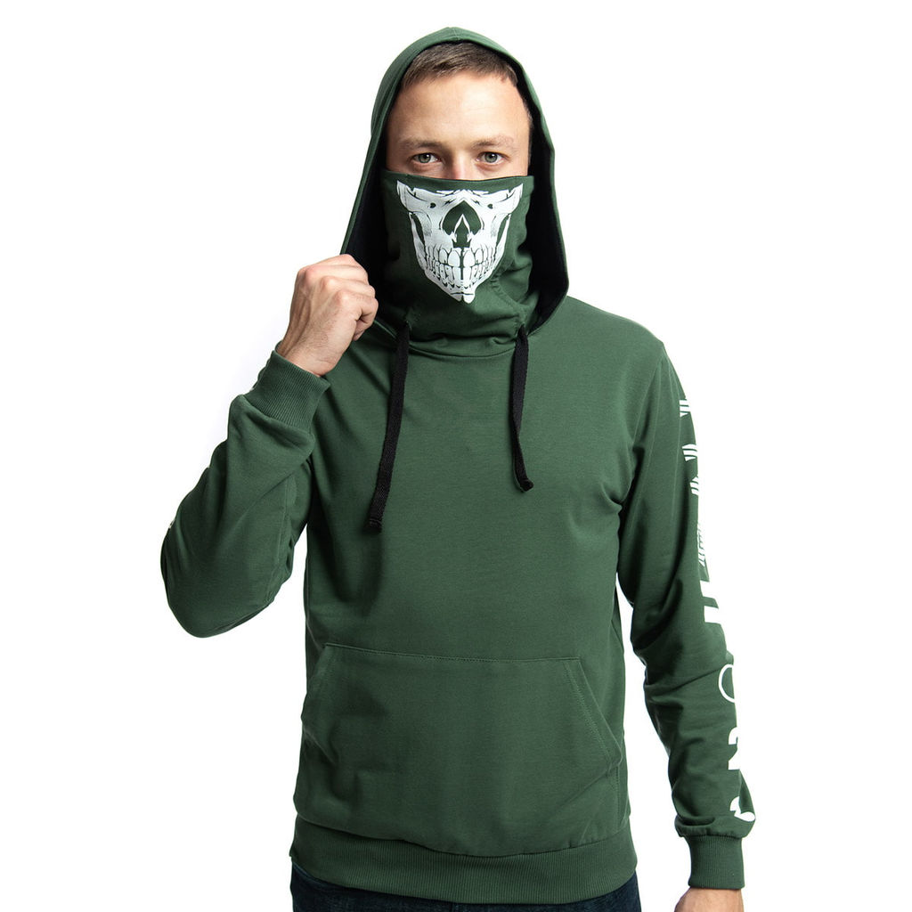 Толстовка мужская из 2-х нитки пенье, с капюшоном и хомутом. Карман-кенгуру. Модель имеет принт на хомуте и рукавах. Пояс и манжеты из кашкорсе. Толстовка отлично подойдёт для дерзкого, повседневного и спортивного образа. Ткань футер двухнитка - эластичная, мягкая, гигроскопичная, легкая в уходе и комфортная при носке.