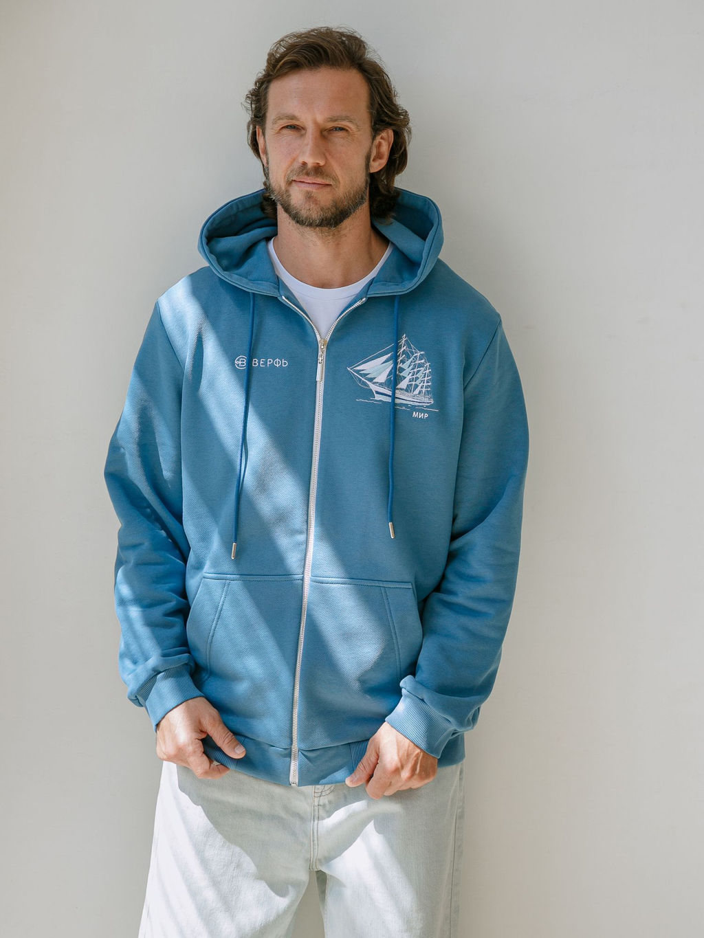 Толстовка вдохновлена воспоминаниями основателя бренда Верфь о его морской практике на паруснике Мир.