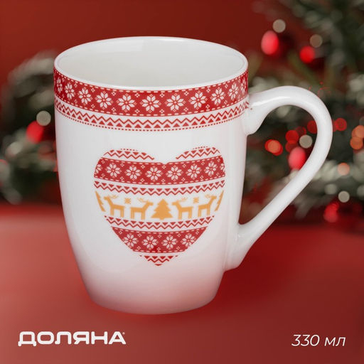 • Кружка новогодняя Доляна «Финский лес», 330 мл, 12×8.5×11 см, фарфор, белая