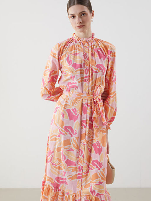 F?rf?rl? Dik Yaka ?i?ekli Kad?n G?mlek Elbise