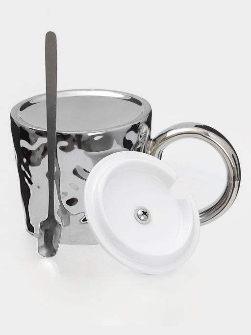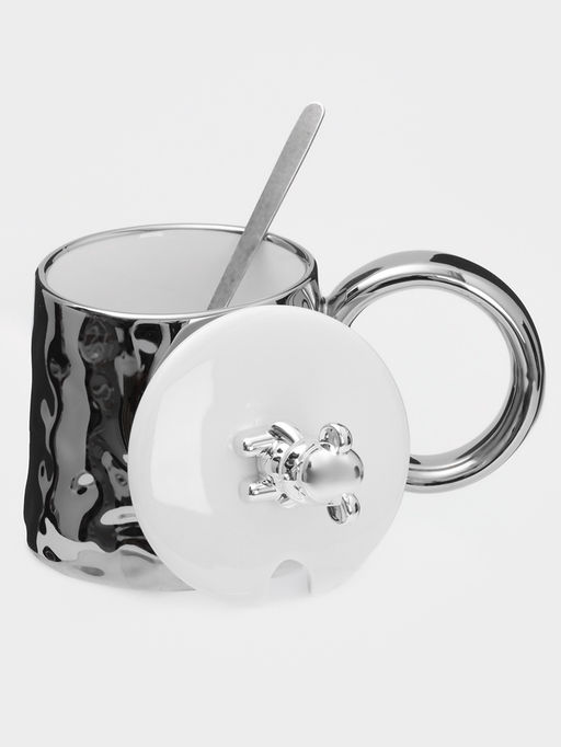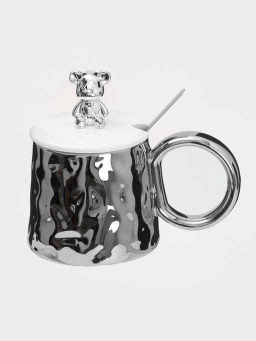 Кружка с ложкой «Стильный мишка», 320 мл, керамика, серебристая