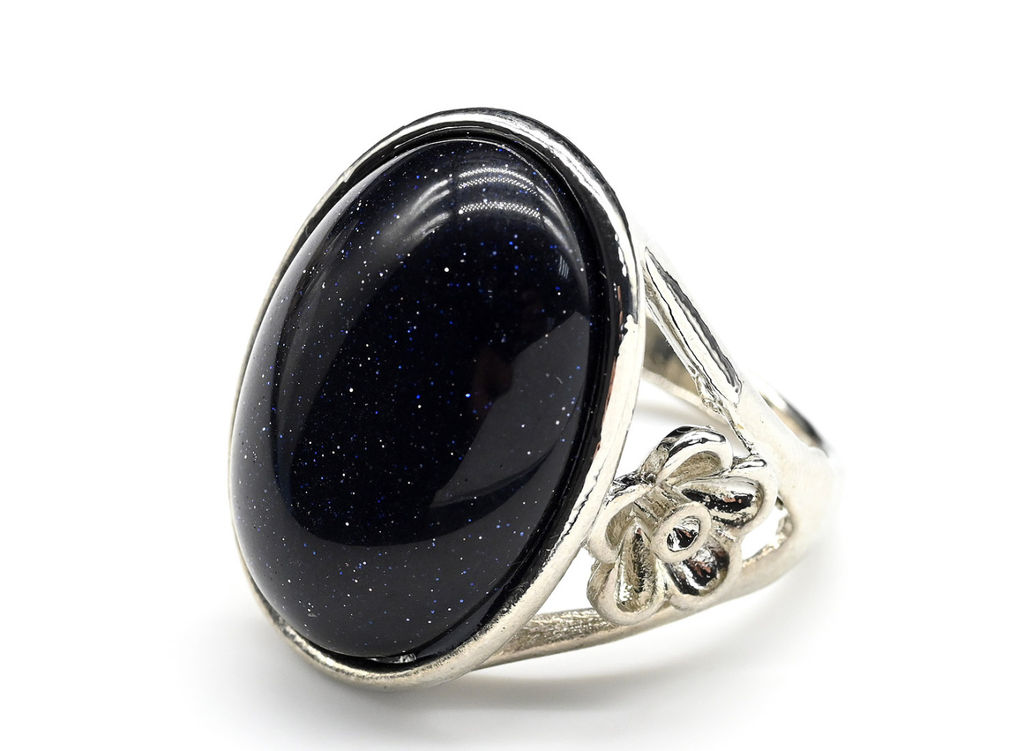 Кольцо с авантюрином синим овал 21*27мм Радуга камня