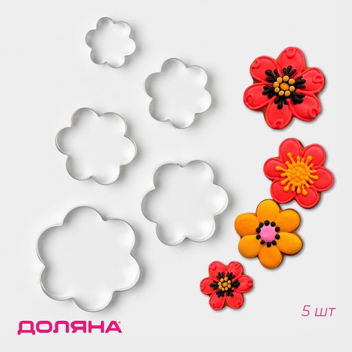 • Формы для печенья Доляна «Ромашка», набор 5 шт., 7.8×7.8 см, металл, серебристые