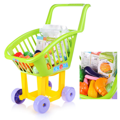 • Тележка выполнена из качественного пластика, имеет яркие цвета и безопасные края.