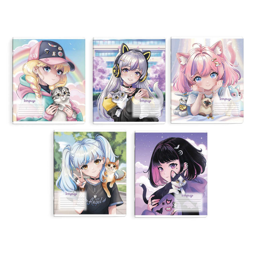 Тетрадь школьная ученическая, 24 л, клетка, арт. 68534/ 10 АНИМЕ С КОТИКАМИ /А5+, мягкий переплёт (2 скобы), обложка - выборочный УФ-лак, мелованный картон 190 г/м?, упаковка ассорти/