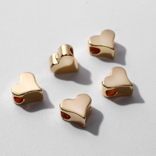 • Бусина - разделитель радированный «Сердечко», набор 10 шт. 6×6 мм, внутренний d=2 мм, цвет золото
