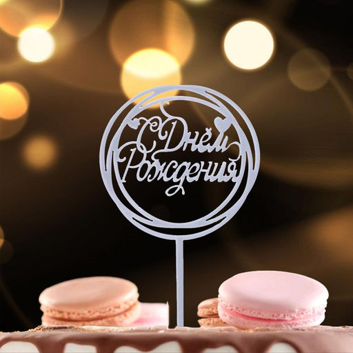• Цена за 2 шт. Топпер для торта «С Днём Рождения», серебряный
