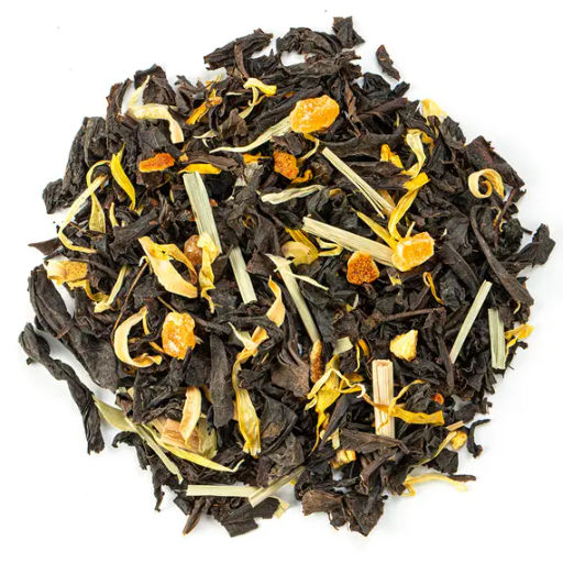 Состав: чай черный, цукаты ананаса, цедра апельсина, лимонная трава, лепестки календулы, цветки апельсина, аромат сладкого апельсина