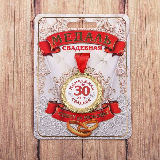 • Медаль свадебная на открытке «30 лет жемчужная свадьба», d=4 см