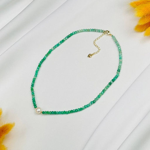Колье из зеленого Берилла и Жемчуга "градиент"