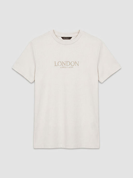 Bisiklet Yaka London Bask?l? Kad?n Ti??rt