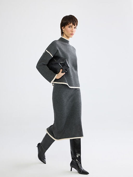 Beli Lastikli Y?rtma?l? Triko Kalem Etek